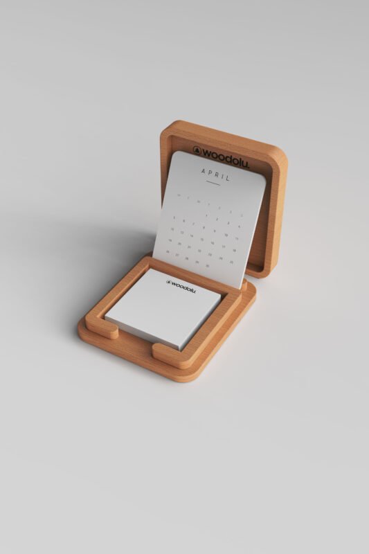 Modern Ofisler İçin Ahşap Masa Takvimi ve Şık Aksesuarlar