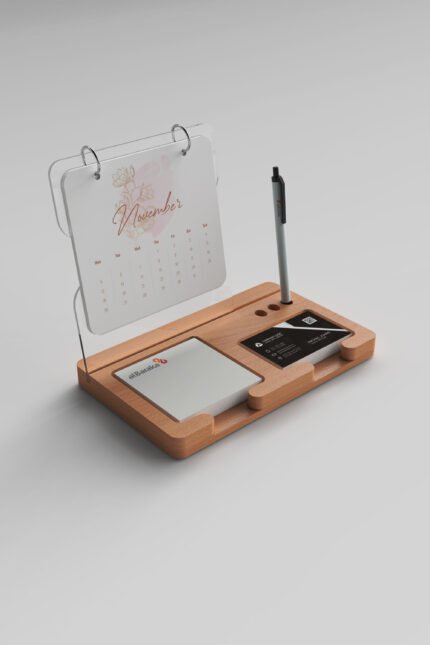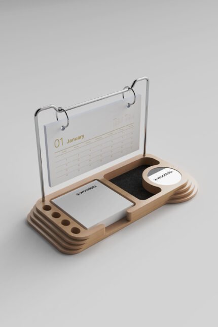 Ahşap taşıyıcılı masa takvimlerimizi; defter, ajanda, kalem, not kâğıdı, özel tasarım takvim blokları, yeni yıl tebrik kartı, kitap ayracı, kahve fincanı, kupa bardak, termos, kuru çiçek, kokulu mum, masa üstü aksesuarları ve benzeri birçok ürünle bir araya getirerek özgün, şık ve işlevsel setler halinde hazırlayabilmekteyiz. Bu zengin kombinasyonlar, hem çalışanlarınıza hem de iş ortaklarınıza değer katacak prestijli bir hediye seçeneği sunmaktadır.